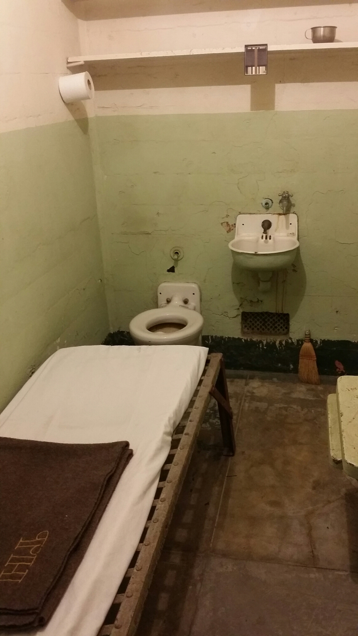The first part I saw was the cells in B & C block. Each cell was about 5 feet by 9 feet (so not very big) all they had was a small sink with cold water, a bed and a toilet. The cells in D Block (segregation) were more spacious, but the inmates were in their cells 24 hours a day with only 1 day a week allowed for going out into the courtyard or something and even then they had to be alone. I think they were for the really bad people…