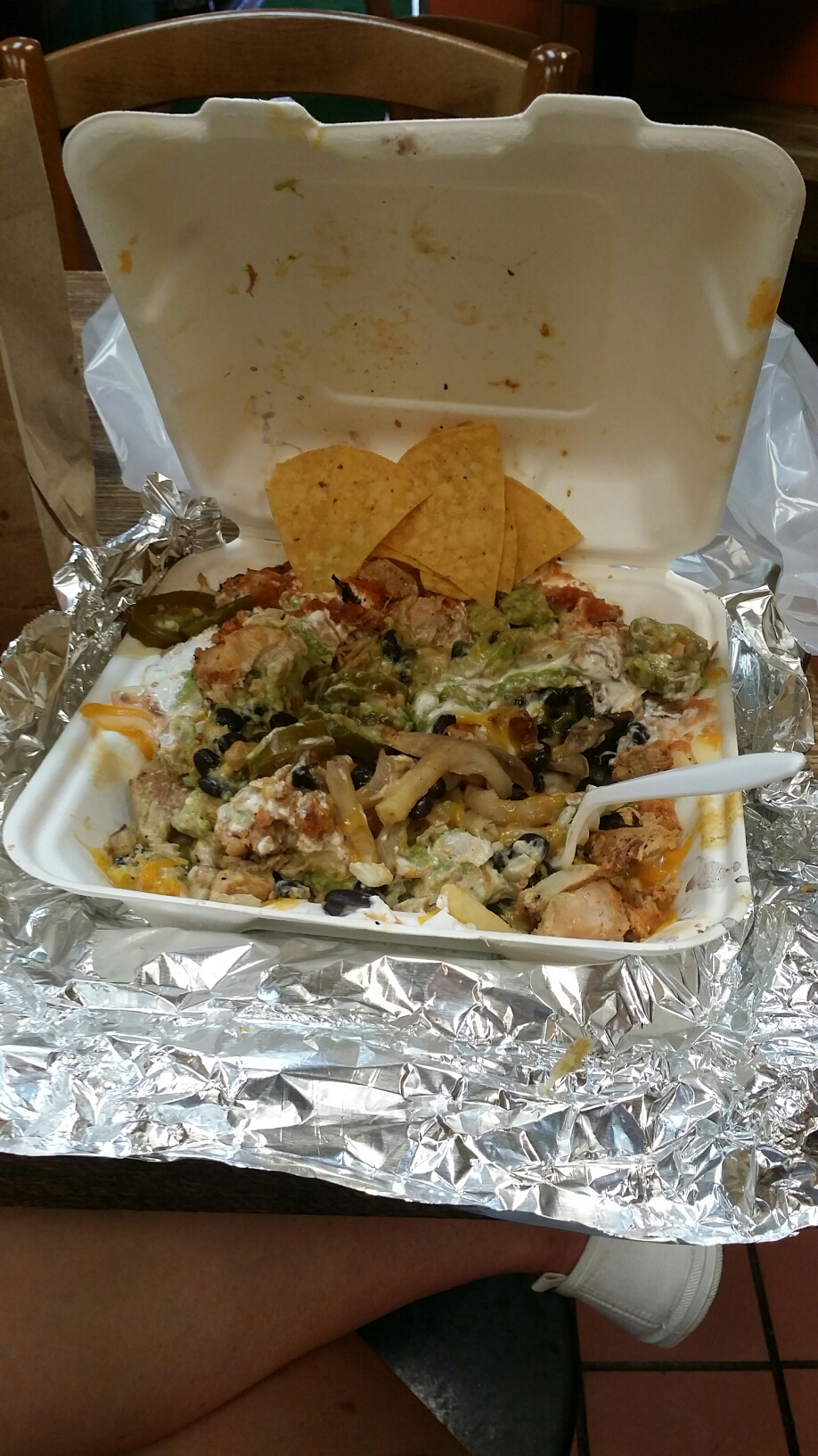 It was just way too much. It’s meant to be nachos, but it’s literally french fries covered with sour cream and salsa and guacamole, grilled chicken, jalapenos and cheese. While I was waiting for it to be made I was snacking on corn chips they give you when you order and a small Fanta (which was a large in NZ terms) so I was not at all hungry when it came to my main meal. 😧