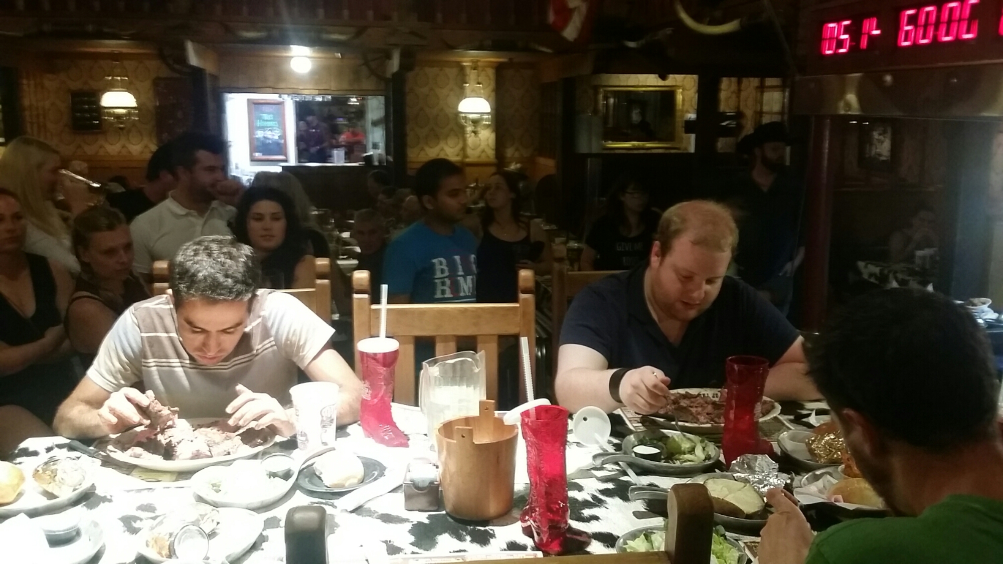 At the restaurant they do a Steak Challenge so a couple of people signed up for that from Contiki. You have to eat a 2kg (72oz) piece of steak as well as a side of shrimp, a bread roll, some salad and a baked potato.