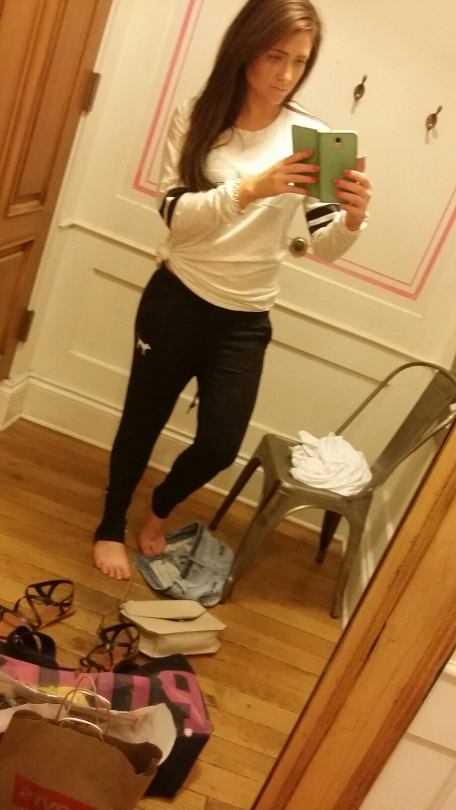 I spent quite awhile in there. I really wanted some Pink tracksuit type pants so got these dark grey – ish ones and a top to semi-match.