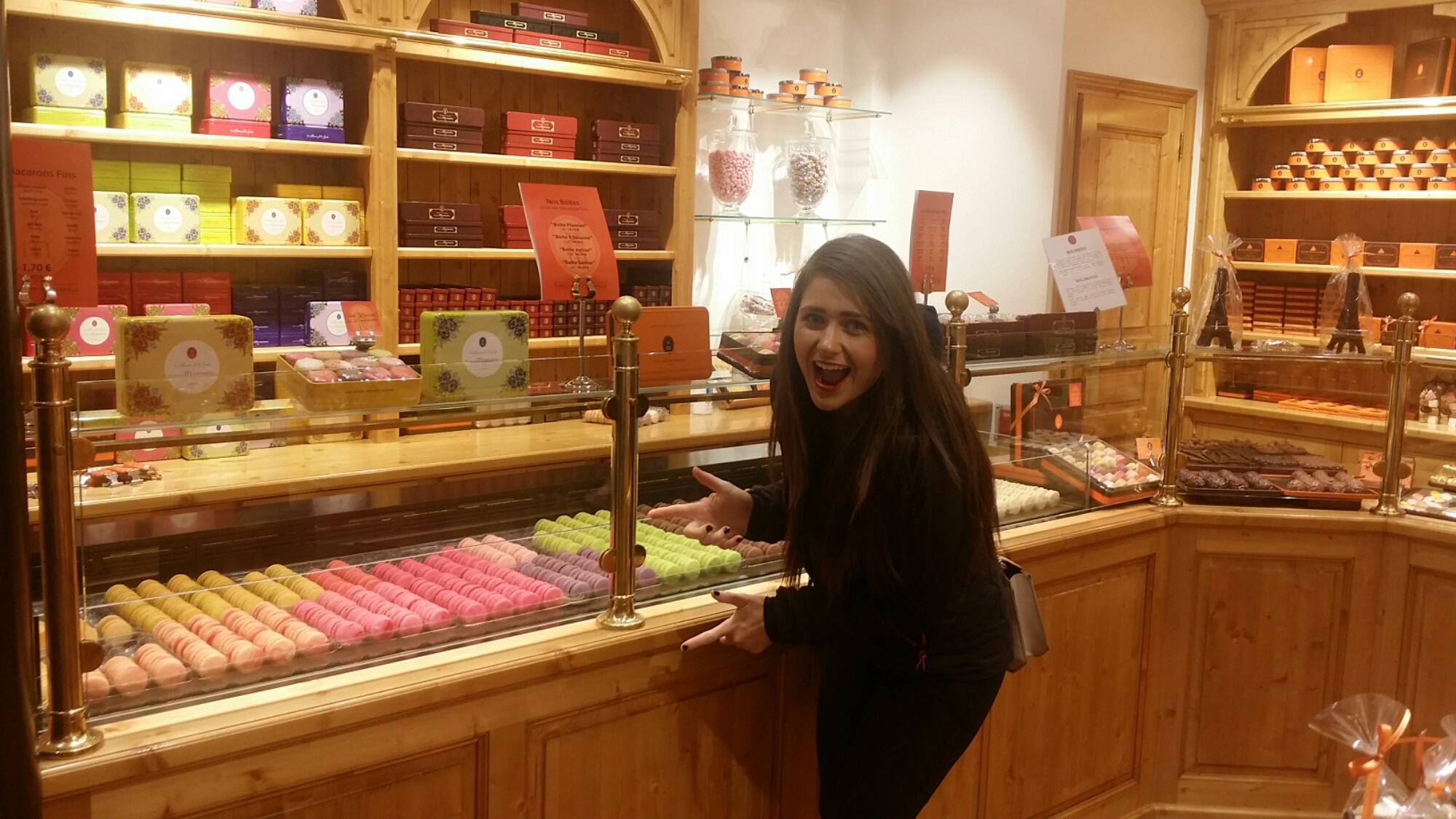 Kara, Kelly & I got off the coach with our red lipstick freshly applied just before the Louvre pyramid and found this cute french Macaroon shop where we each bought a Macaroon.