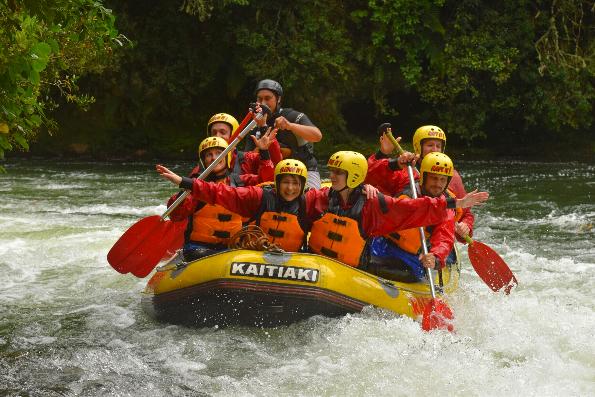 Once our life-jackets were checked over and the safety rules told to us, we all divided ourselves into groups of 6 and hopped into a raft with a Rafting Guide.