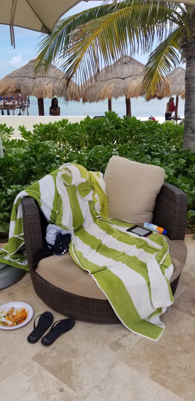 After the swim I relaxed on the beach with a drink and read some of my kindle 💜