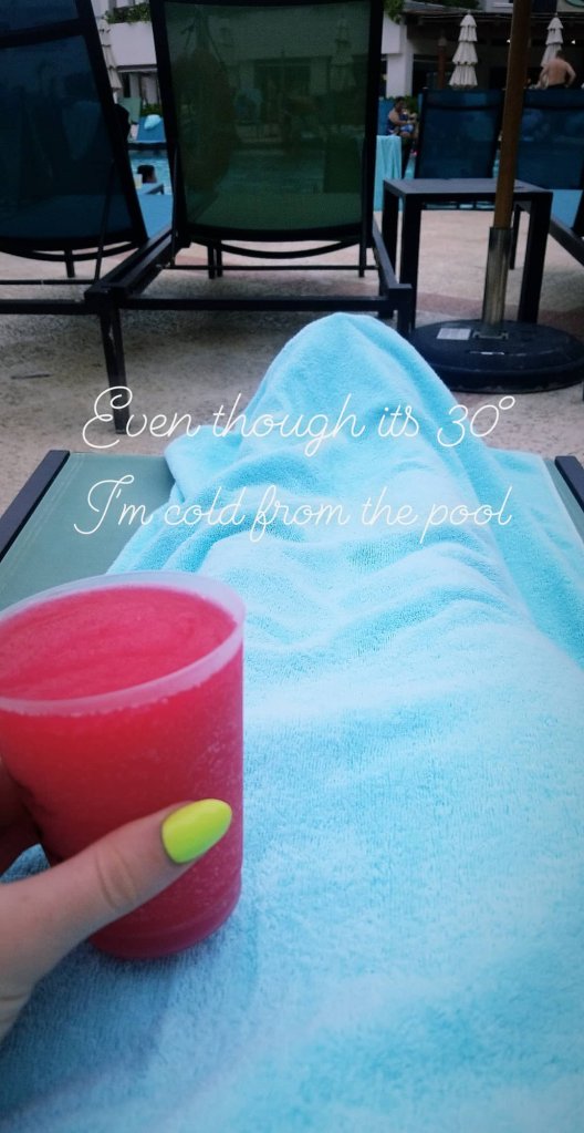 I relaxed by the pool for a few hours while Nathan went and worked out at the gym. (He can only do so much relaxing haha) we did consider going to Coco Bongo tonight (which is like a nightclub/show not far from our hotel) but we decided not to. We thought it’d be better if we were in a group of people and we’re pretty much on a relaxation/sleepy/drinky buzz this vacation. Clubbing requires energy I do not have. 😄