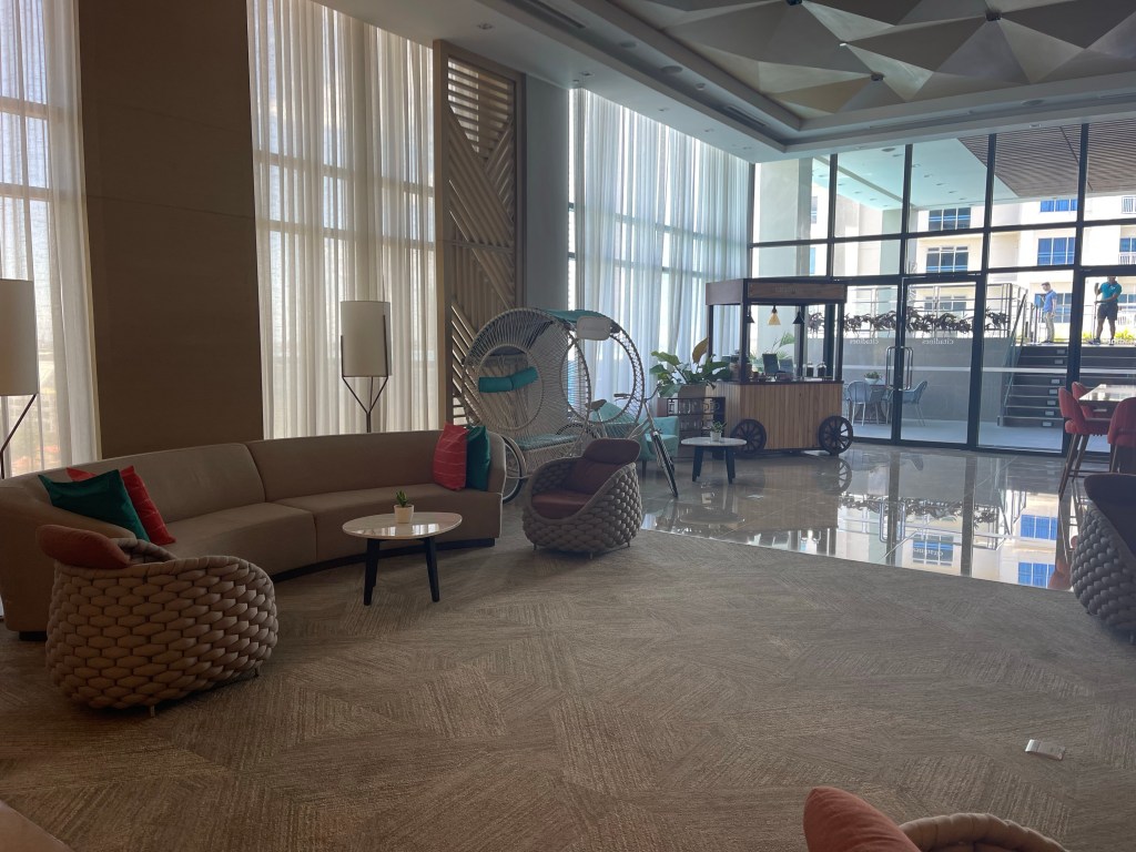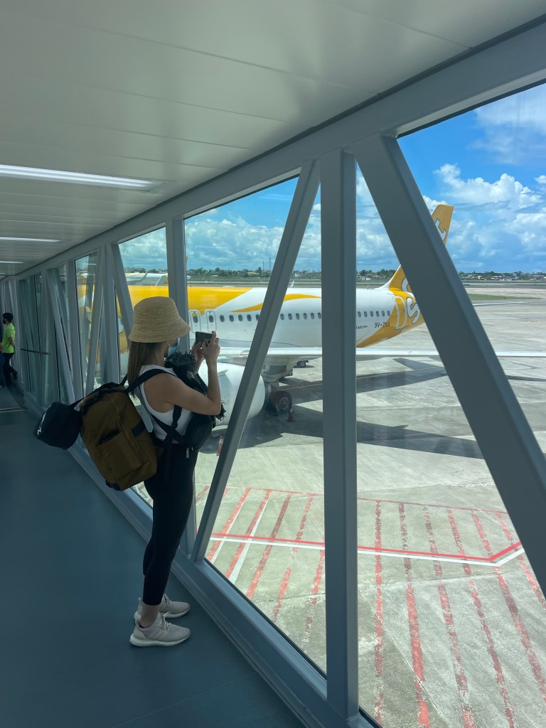 When we arrived at this little shopping area called ‘The Greenery’ we quickly noticed there weren’t really any place of interest for us to eat at. It’s definitely a Philippine thing because they loveeeee their chicken! Literally every place is a chicken store and so many food outlets sell chicken 😂 I think our options were chicken or seafood and we weren’t keen on either so we walked 10 minutes down the road to a cafe called Abaca Bakery Cafe. I mentioned in my last post about how so many restaurants, cafes and stores here seem super over staffed and lots of people just stand around… well that was definitely the case with Abaca Bakery. We walked in and there was one person sitting and having a coffee and cake. We walked to the counter and they had two staff at the till (one a trainee and one training) then two other guys behind the cabinet. Then they had another 4-5 staff off to the side of the counter just standing there watching. It’s honestly so awkward (this has happened to us a few times) where we walk in a place and it’s dead silent and they all just look at us and wait intensely to what we’re after. I ordered a Calamansi Juice as I kept seeing it advertised everywhere and wanted to try it. Along with a toasted bagel and lamington. Bree ordered a toasted bagel as well but she skipped the drink as she grabbed one from somewhere else prior. After confirming our order about 3 times they got our name and we went and sat down at a table.