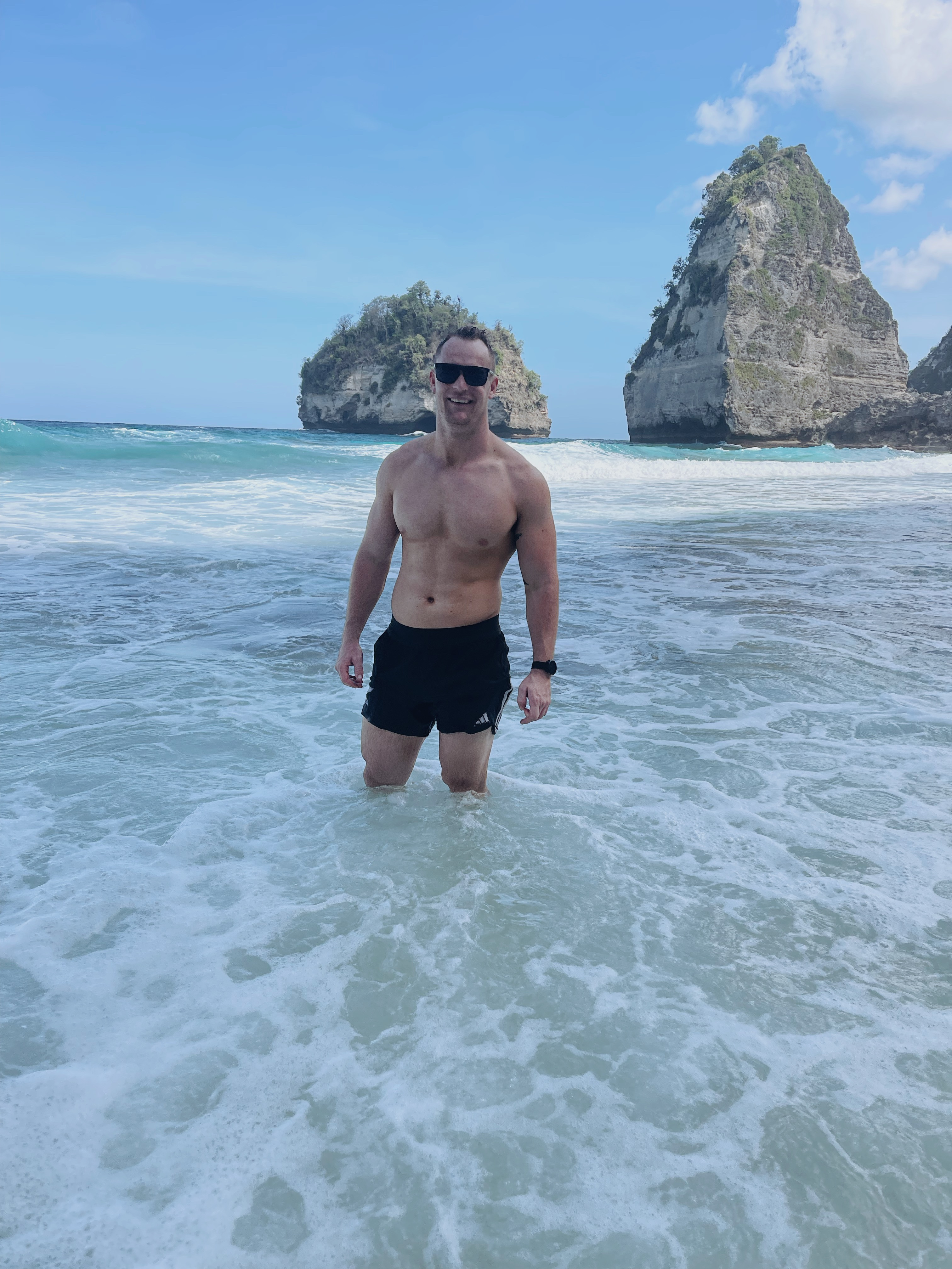 Unfortunately we didn’t get the sun at Diamond Beach as it was shaded by the cliff. Nathan kept saying we should have walked down to Kelingking Beach and enjoyed the sun there but we weren’t to know that Diamond beach would be so shady! If we could do it again, we probably would have made the effort to treck the 120m’s down to Kelingking Beach and stayed there for the day as it really was stunning!